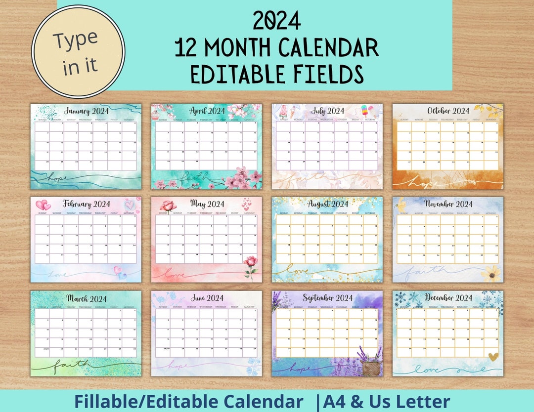 Source : www.etsy.comEDITABLE Monthly Calendar 2024 Bundle, Printable Fillable 2024